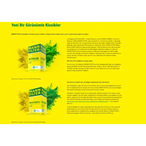 MANN filtrelerinde kutu tasarımı değiştiği için ambalajlarda farklılıklar görülebilir. Bilgilendirme amacıyla MANN’ın resmi web sitesindeki duyurular görsele eklenmiştir. Dilerseniz siz de MANN’ın resmi sitesini ziyaret ederek bu durumu doğrulabilirsiniz.